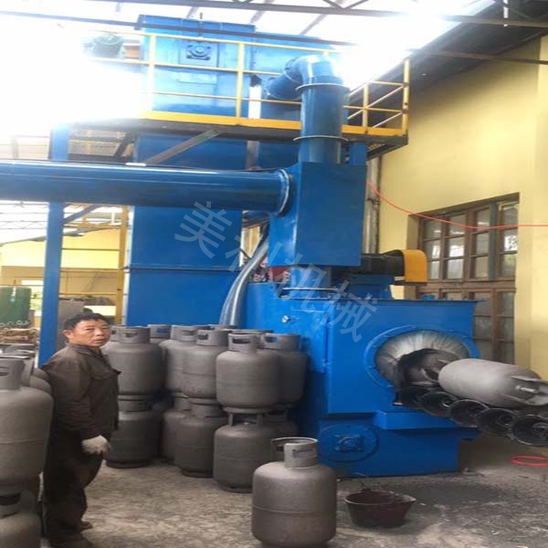 液化气瓶外抛机是我公司自主研发的一种新型设备,用于抛丸清理各种钢瓶、钢管、液化气瓶等工件。通过抛丸清理,不但可以去除工件表面的氧化皮、油漆或者锈蚀,清理工件上的油污等杂质,还可以消除工件的应力,提高工件的抗疲劳强度,达到规定的粗糙値与硬度,并最终达到提高整个工件表面质量的目的。