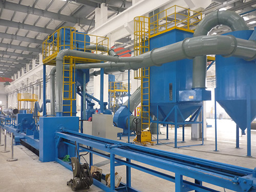 喷丸清理完成后,喷枪退出;翻转架在液压系统推动下将钢瓶竖起,将钢丸倾倒至下方收丸料斗;提升机将钢丸提升后经分离器分离后送回喷丸器,留待进行下一清理循环。