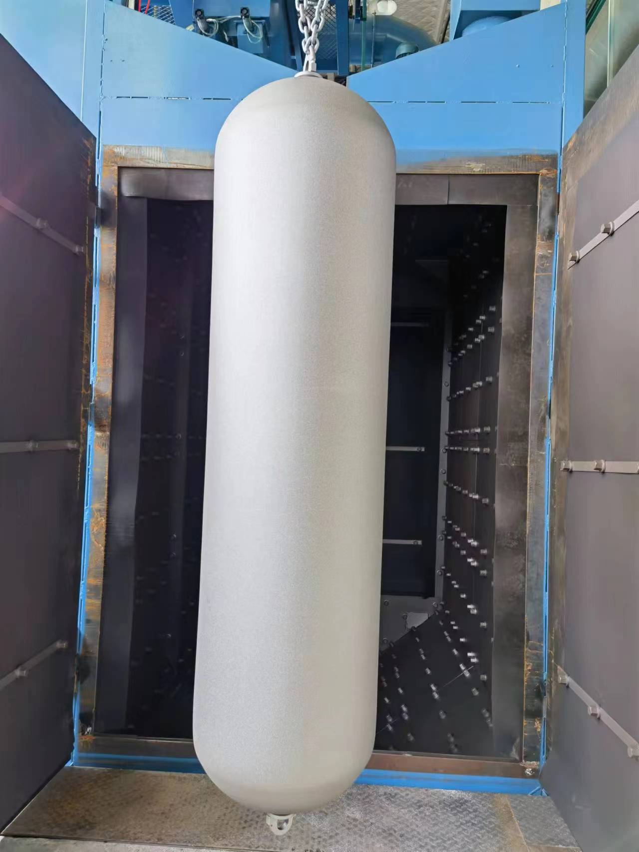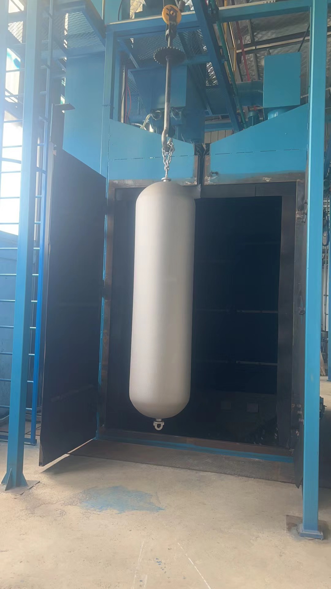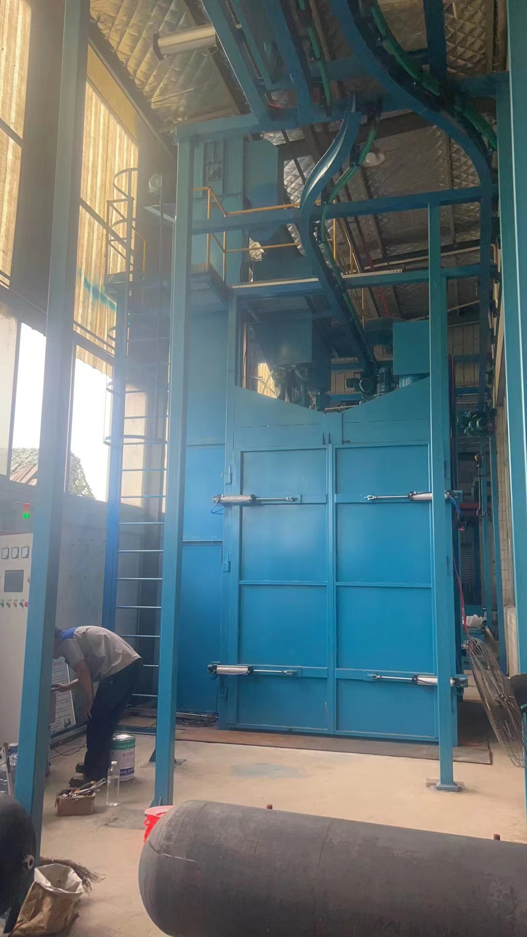 由抛丸清理室、提升机、分离器、螺旋输送器、两个抛丸器总成、弹丸控制系统、吊钩行走轨道、吊钩系统、自转装置、地基、除尘系统及电气控制部分等组成。